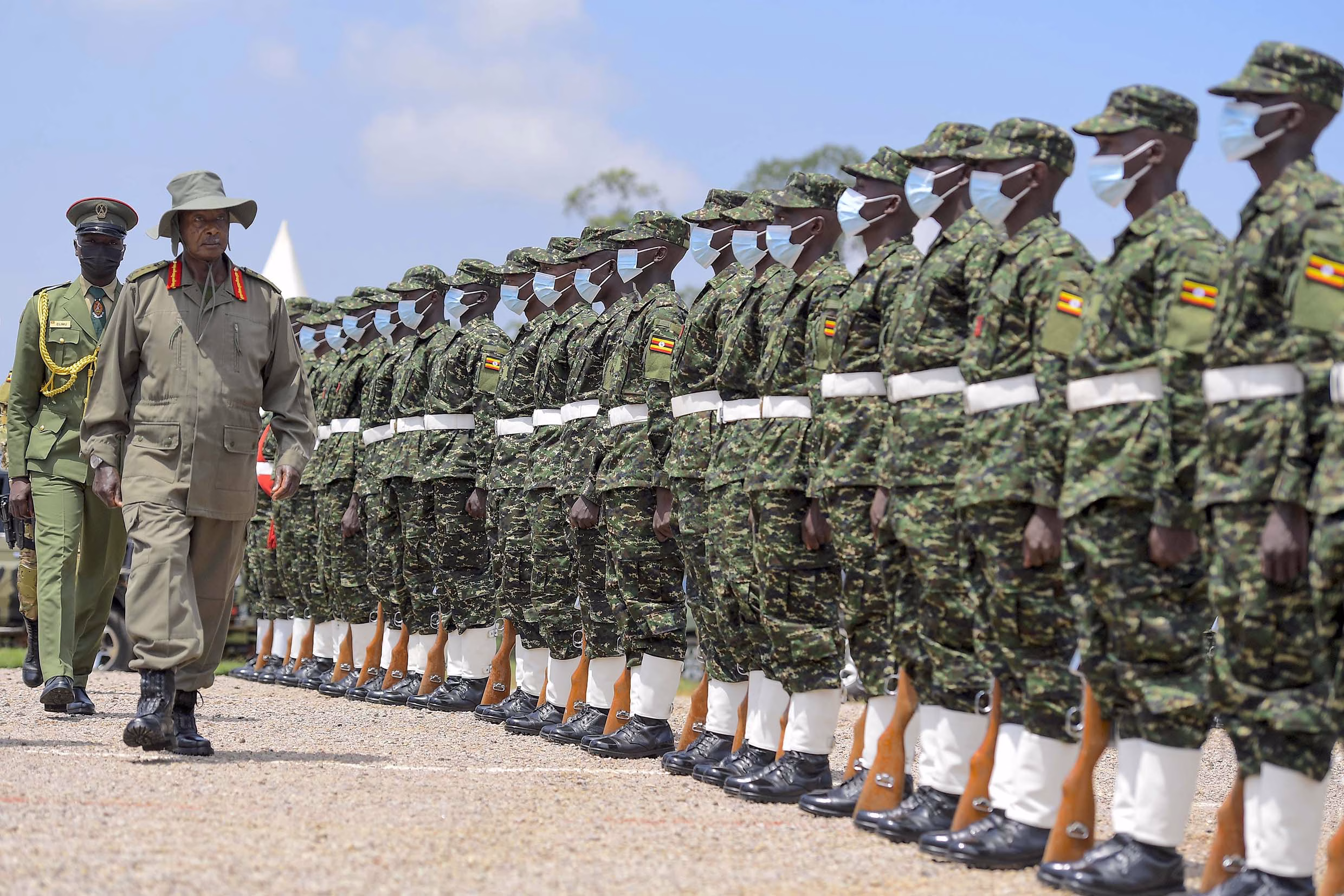 Uganda’s President Yoweri Kaguta Museveni inspects the guard of honour.
