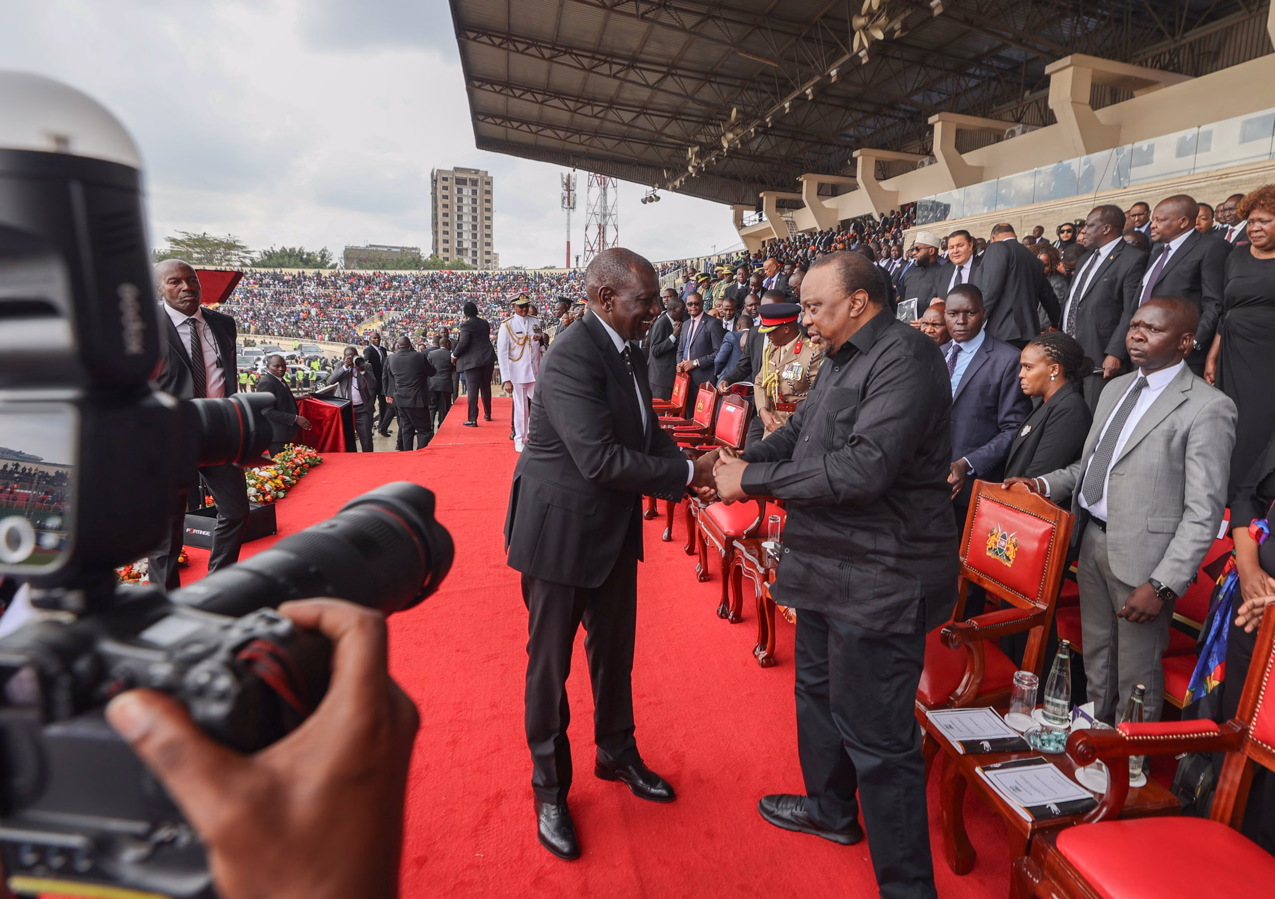NAIROBI, October 17th, 2025: His Excellency President (Rtd) Uhuru Kenyatta today joined President William Ruto, visiting Heads of State and Government, members of the Diplomatic Corps, and thousands of Kenyans at the Nyayo National Stadium for the State Funeral of the late Rt. Hon. Raila Amolo Odinga. The solemn ceremony brought together leaders across political divides in a powerful show of unity to celebrate the life and legacy of one of Kenya’s most influential statesmen.