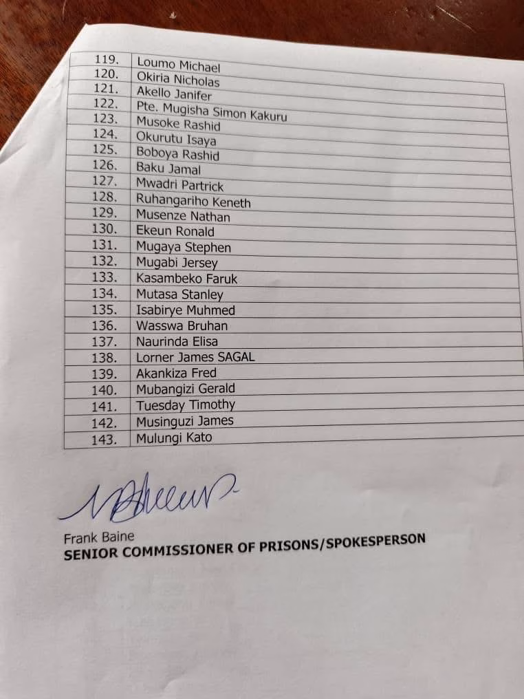 Uganda Prisons spokesperson Frank Baine, who signed the final confirmation document, described the pardon as part of the ongoing government efforts to manage prison population and uphold humane correctional standards.